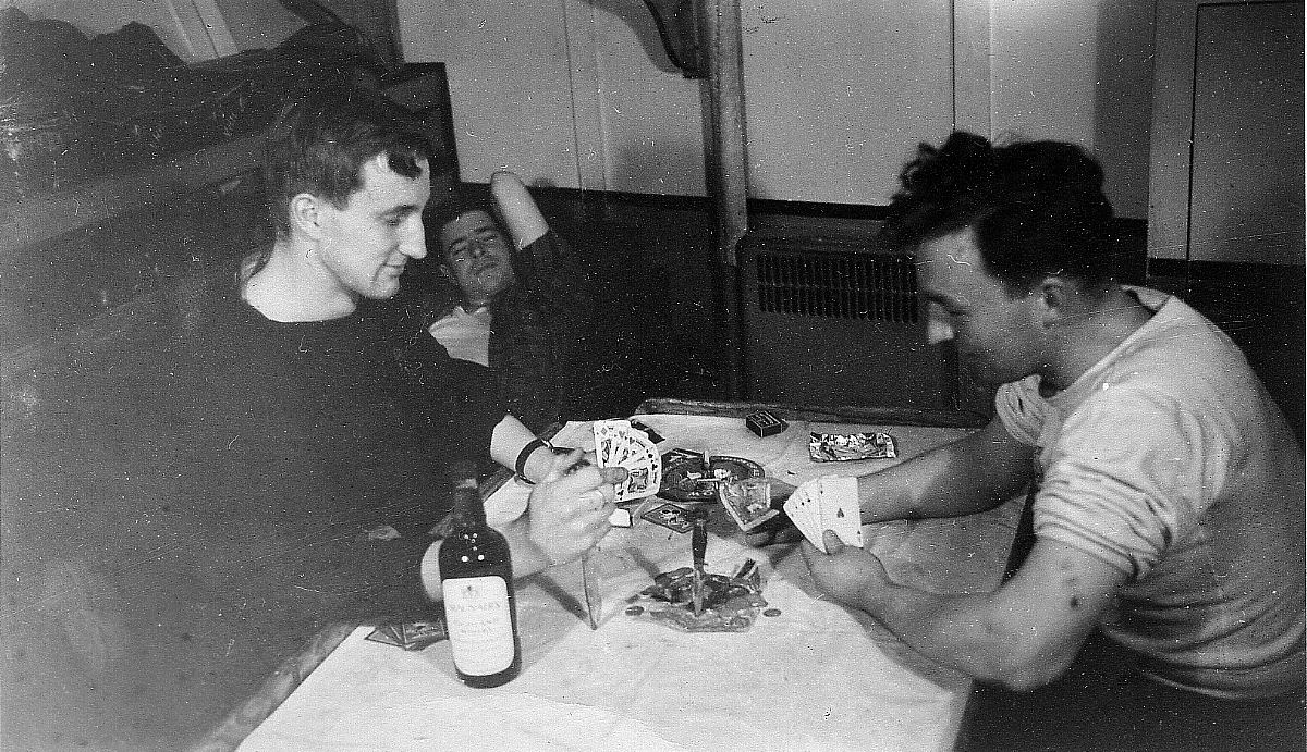Crew members playing cards. These are definitely not official Navy photos – there is liquor and money on the table!