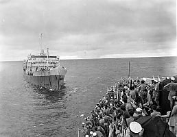 Line is fired from HMCS Ontario to HMS Bleasdale.