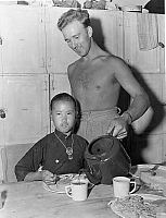 After WW2, he served twice on HMCS Cayuga -- the first time when she sailed in company with HMCS Athabaskan, Crescent, Antigonish, and HMCS Ontario, to Hawaii in Oct 1948. His second time assigned to HMCS Cayuga -- June 1951 to August 1952 -- was for her second tour in Korea. Men identified on HMCS Cayuga are: Fast, Hodgkin, West. See HMCS Cayuga photos.