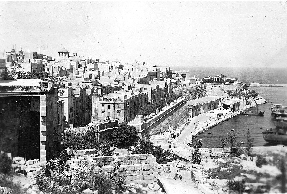 Damaged destroyer, pennant No. H59. This might be the remains of HMS Gallant which had her bow blown off when a mine detonated her forward magazines in January, 1941, killing 65 of her crew. She was towed to Malta and repairs were started but before they were finished, in 1943, she was further damaged in an air-raid and written off. She was sunk as a block ship in September, 1943.